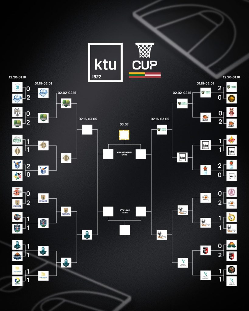 KTU taurės rungtynių tvarkaraštį ir rezultatus galite sekti čia.